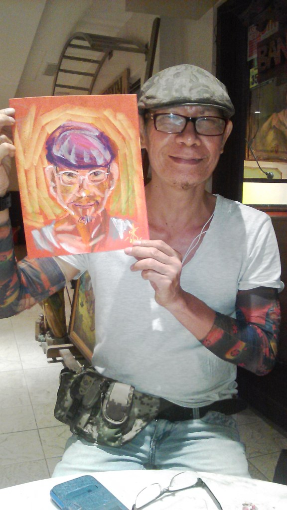 While waiting for the sitter, we made Kuya Emeng, an art and antique broker, a quick portrait. This time I used graphite on my sketchbook. I tried to match Kuya Jeff’s speed. Man, he was really quick! And to think he used oil pastel on felt.