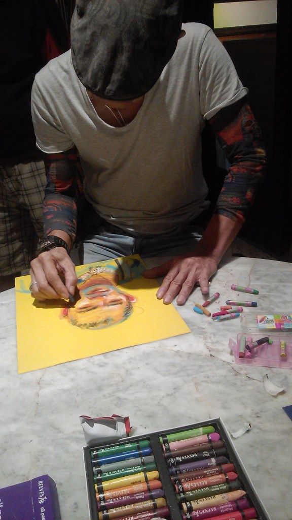 The meeting was quick. I was tired and overwhelmed by the events. They told me to prepare oil pastels and felt paper, it would be our medium and support on our sessions. I went home excited. It was the beginning of something new.