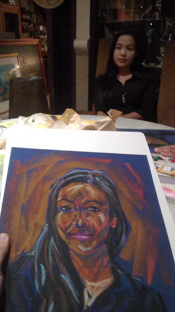My first session with the group was fruitful; an experience I would always cherish. It was a day of many firsts: My first on the spot portrait, my first time to use oil pastel on felt, my first live portrait session, and my first time to learn under the tutelage of accomplished, professional artists. I went home exhausted yet somewhat relieved, I was pushed far beyond my limits. I realized that I still had too much to learn (I still do to this day), good thing my mentors were there to guide me.
