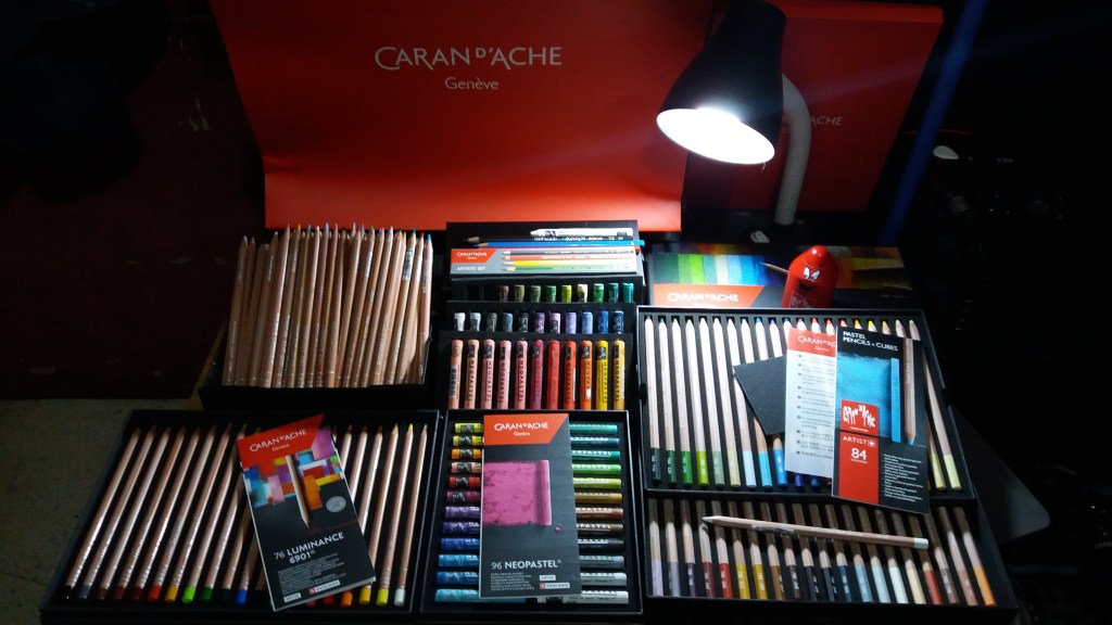I spent a great deal of money on Caran d’Ache. Some thought and said that it was too much, but I always thought of my purchases as an investment (I will make a separate article on using professional grade materials). Honestly, I was initially hesitant to use them due to the price: I only used them for commissions and serious projects, except for some unique hues that I brought to our regular sessions. Sometimes I took my stocks out for a spin. The high costs somewhat made me feel uncertain about the sustainability of using the brand. This fear became greater during the pandemic, as many shops had to close and the production and shipment of some art materials slowed down or even halted. I would always tell myself that quality came with a price and I need to take risks.