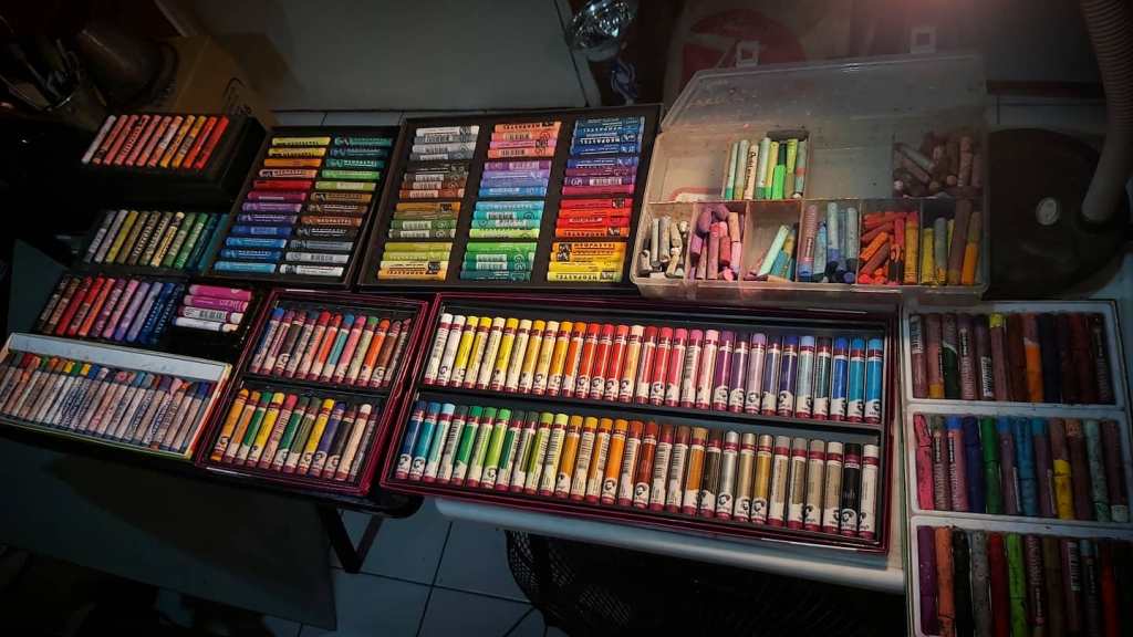 I have tried several brands in the past. The earliest I could remember was the Cray-pas from Sakura. It was my late uncle’s. My first set, if my memory serves me right, was a box of Pentel oil pastels, which had around 24 colors. My late uncle Joel Leveriza (a childhood buddy of acclaimed artist Elmer Borlongan, they used to take art lessons together) spent an entire evening to teach me how to use it, pretty much to color an ink drawing in oslo paper in that context.