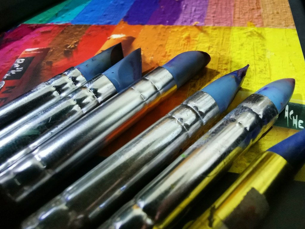 My renewed fascination with oil pastels allowed me to explore other brands. Aside from the good old Pentel and Dong A, I also bought sets of Reeves (felt like bigger sticks of Pentel), Faber Castell (felt close to Reeves but a bit harder), Sakura Cray-pas Expressionist (really good all-rounder with large sticks, I regret letting my set go), Lefranc & Bourgeois (too hard for me, did not like it at all), Golden (the cheapest one found even in stores, much like Dong A), Holbein Adademic (a step above Dong A and Pentel in terms of quality and price), Royal Talens Van Gogh (Really awesome brand, feels like Holbein but has lightfast ratings that are very good), Maimeri Classico (too hard for me too, never used them for any serious work), Maped Colorpeps (feels like Dong A, just bought it for the periwinle stick), and Atlas Neons (only found in Office Warehouse shops, kinda transparent and fugitive).