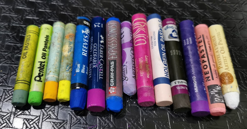 Some student grade oil pastels that I used before and are no longer in my possession.