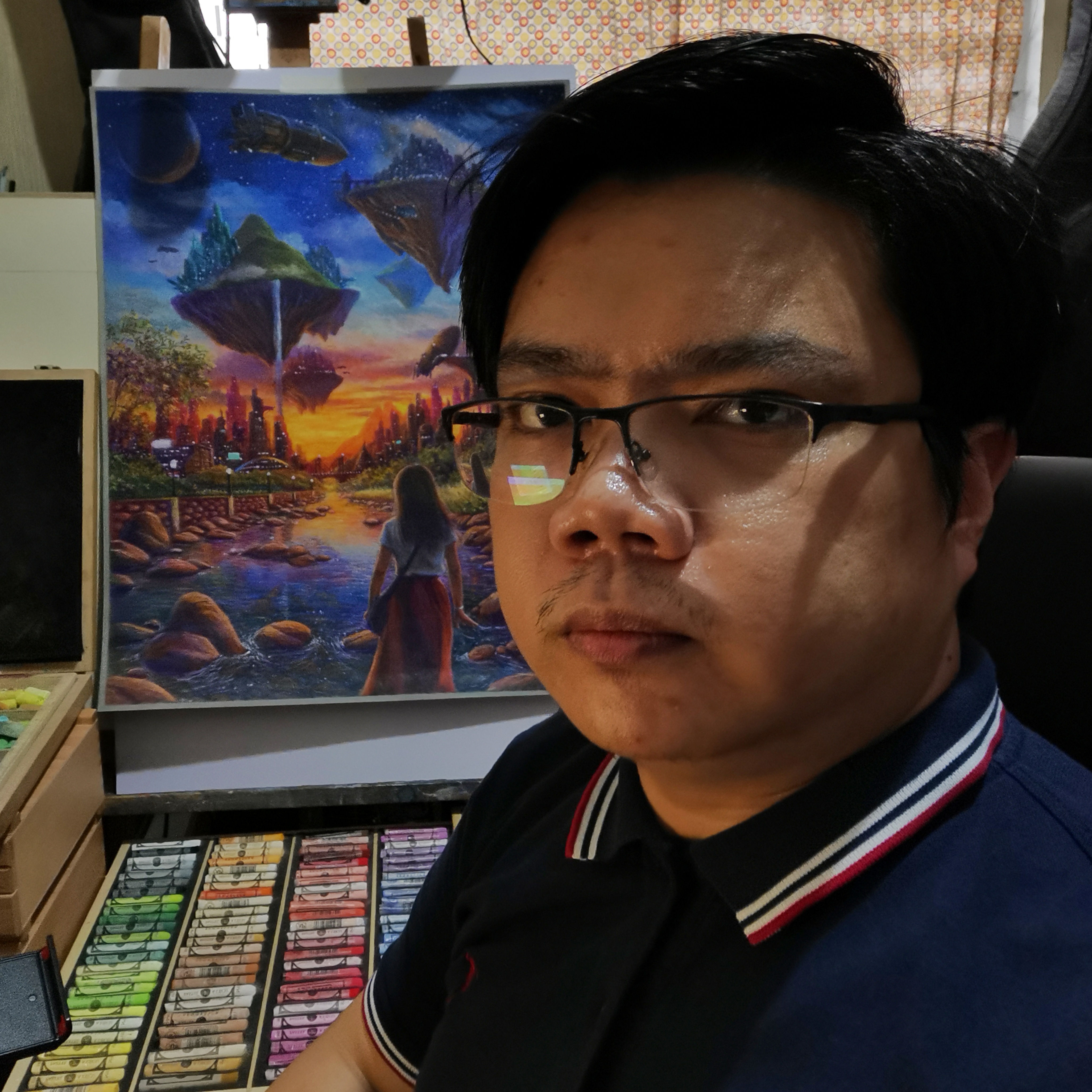 He is grateful for the opportunity to contribute to the art community, serving on the Board of Directors of the Philippine Pastel Artists, Inc. and as Secretary of Grupo Kwadro. He enjoys sharing his knowledge through part-time teaching, workshops, and tutorials, always eager to learn alongside other artists. Now dedicating his time fully to his art, he continues to explore, experiment, and humbly pursue his creative path.